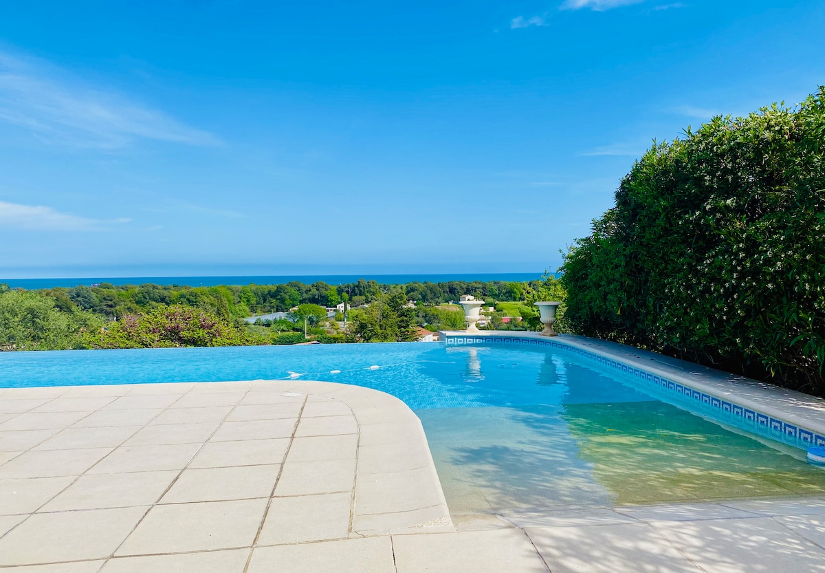 2025 noticias de que nuestra casa está registrada oficialmente como una casa de 4 estrellas. Relájate en este alojamiento único y tranquilo con vistas panorámicas al mar y las montañas. Esta villa está ubicada en las alturas de Antibes en una tranquila zona residencial rodeada de una parcela de 5800 m2. todas las tiendas están a 3 minutos en coche y el centro de la ciudad y las playas están a 7 minutos.