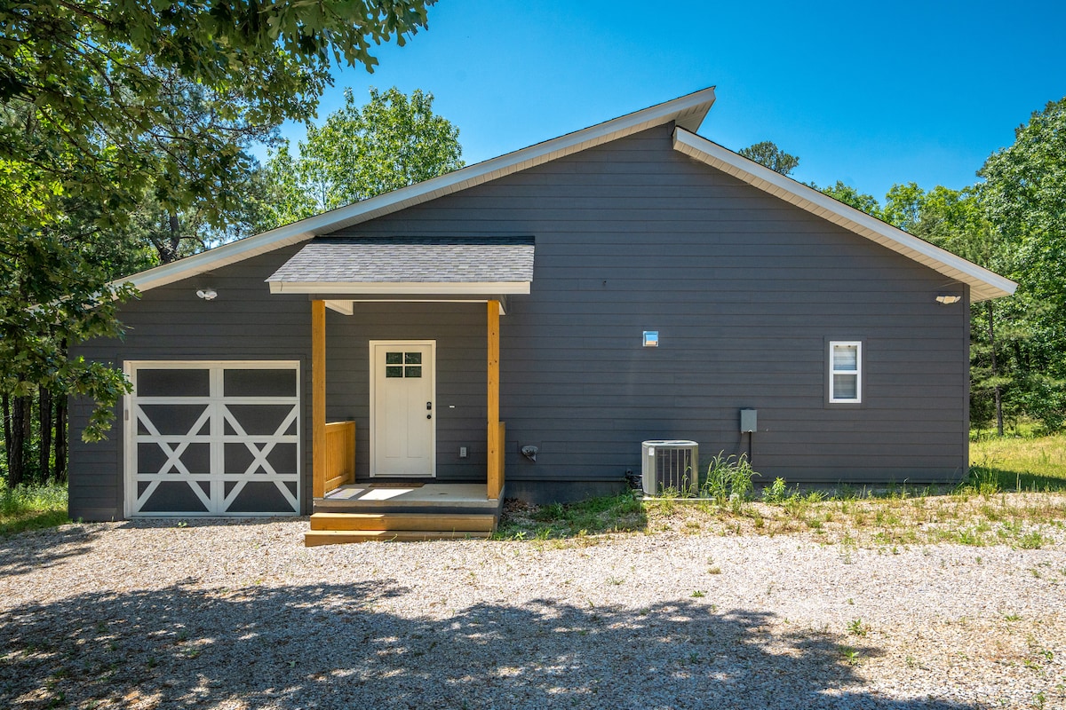 «Un abrazo». «Un nido de amor». «No queríamos irnos». ¡Disfruta de un momento muy especial en nuestra cabaña en el bosque! Relájate y desconecta en este alojamiento tranquilo y elegante. Disfruta de un fácil paseo de 15 minutos por nuestros senderos. ¡Esta nueva construcción te dará el espacio que necesitas para sentirte rodeado de lo mejor de la naturaleza! Ya sea que busques un retiro personal, una escapada romántica, pasar tiempo en uno de los hermosos lagos de nuestra zona o una visita llena de diversión a la histórica Hot Springs, Arkansas, aquí se crearán hermosos recuerdos.