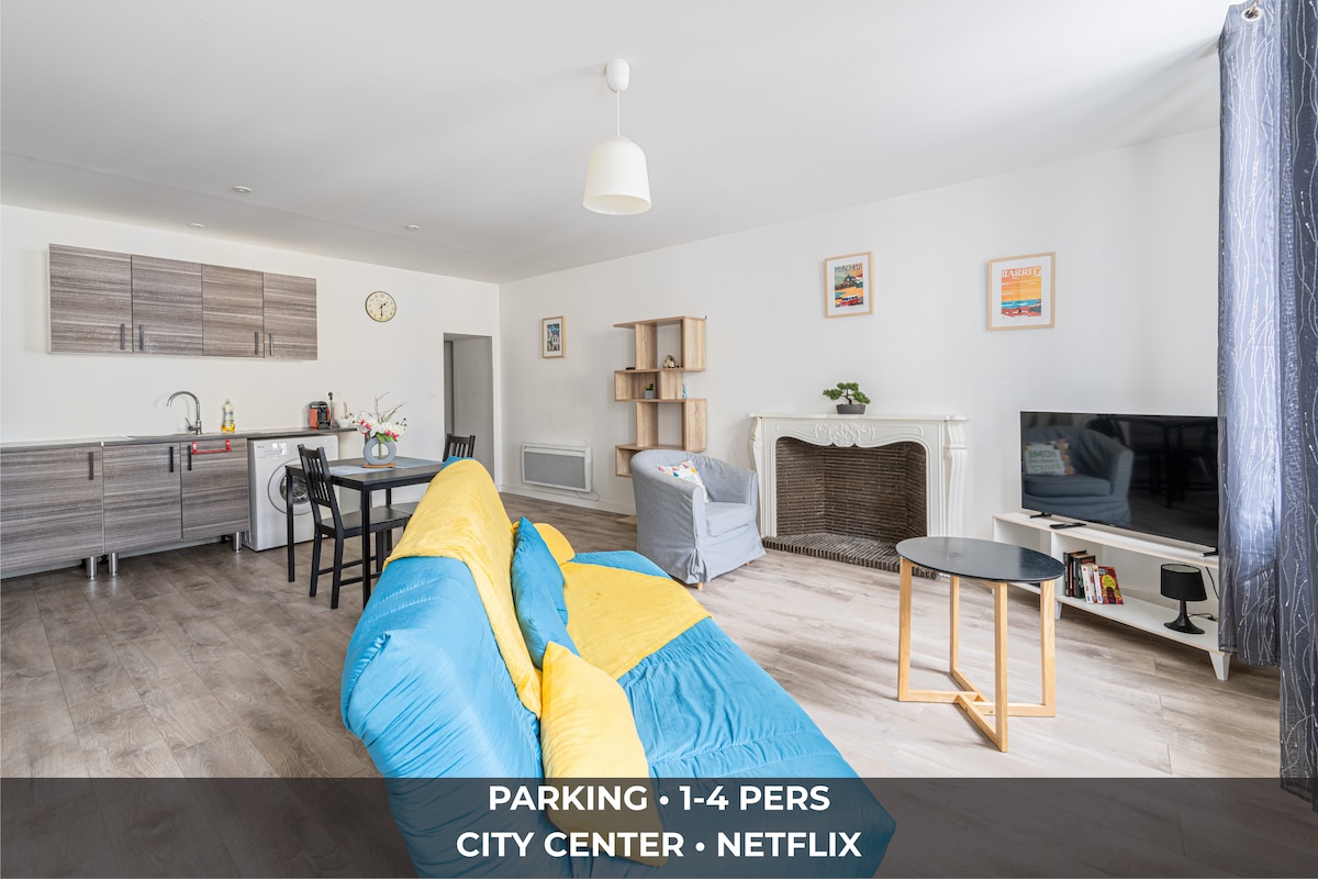 🏡 Magnífico dúplex luminoso de 80 m², a 5 minutos a pie del centro de Pau, con todas las comodidades y estacionamiento ✨ Puntos fuertes Gran espacio luminoso 2 dormitorios con espacio de almacenamiento Cocina totalmente equipada. Acogedor salón con TV, Wi-Fi y zona de comedor Baño con ducha a ras de suelo Lugar de estacionamiento privado gratuito Entrada autónoma y check-in flexible. 📍Centro de la ciudad, comercios y restaurantes, Castillo de Pau, Boulevard des Pyrénées y estación de tren a poca distancia Acceso rápido a los Pirineos (esquí, senderismo)