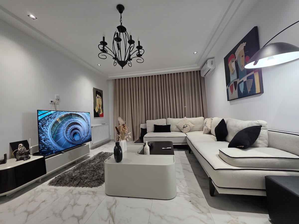 Modern mini-home in a quiet Ennasr 2 villas area. Private entrance on the main road, like your own small house. Compact but fully equipped: This stylish apartment is designed for privacy,comfort, calm, and convenience — ideal for couples or solo travelers. 🌿 Highlights: • Private entrance,ground floor,no shared space • Self check-in & private parking • Air conditioning & heating • Wi-Fi • Smart TV & streaming access • Fully equipped kitchenette • Elegant living area