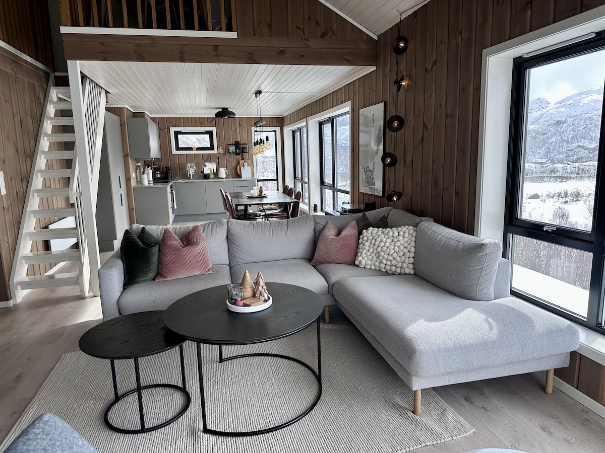 Romslig og moderne hytte med panoramautsikt