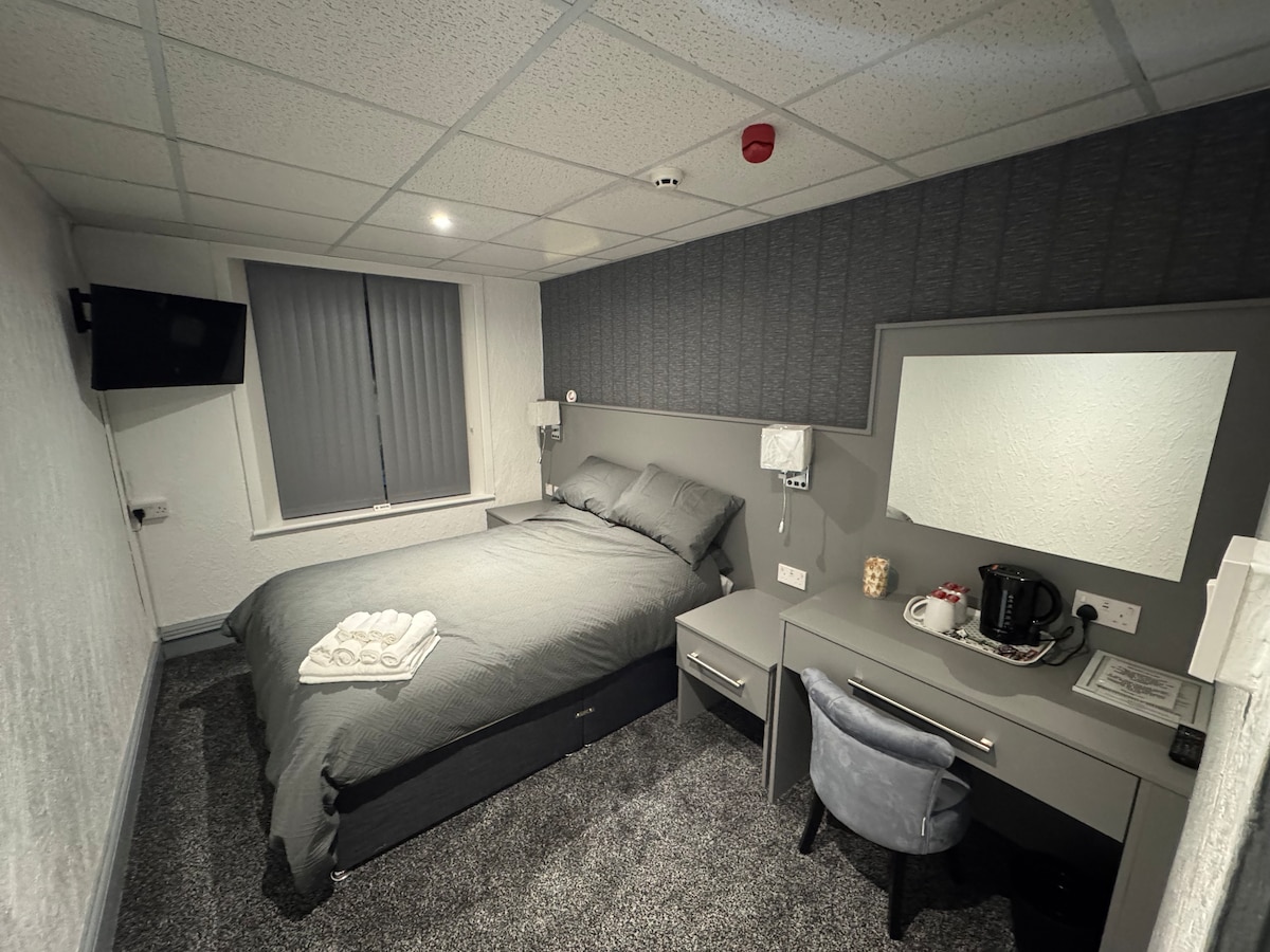 Habitación Promenade súper moderna y acogedora. Adecuado para 1/2 personas dependiendo de cuánto tiempo planeas pasar en el espacio. Vista al mar en suite con TV y té/café. Ganchos para ropa sin armario debido al tamaño del espacio. Estacionamiento disponible en el hotel - WIFI GRATUITO - Se admiten mascotas - Insta - Fernyhousebpl