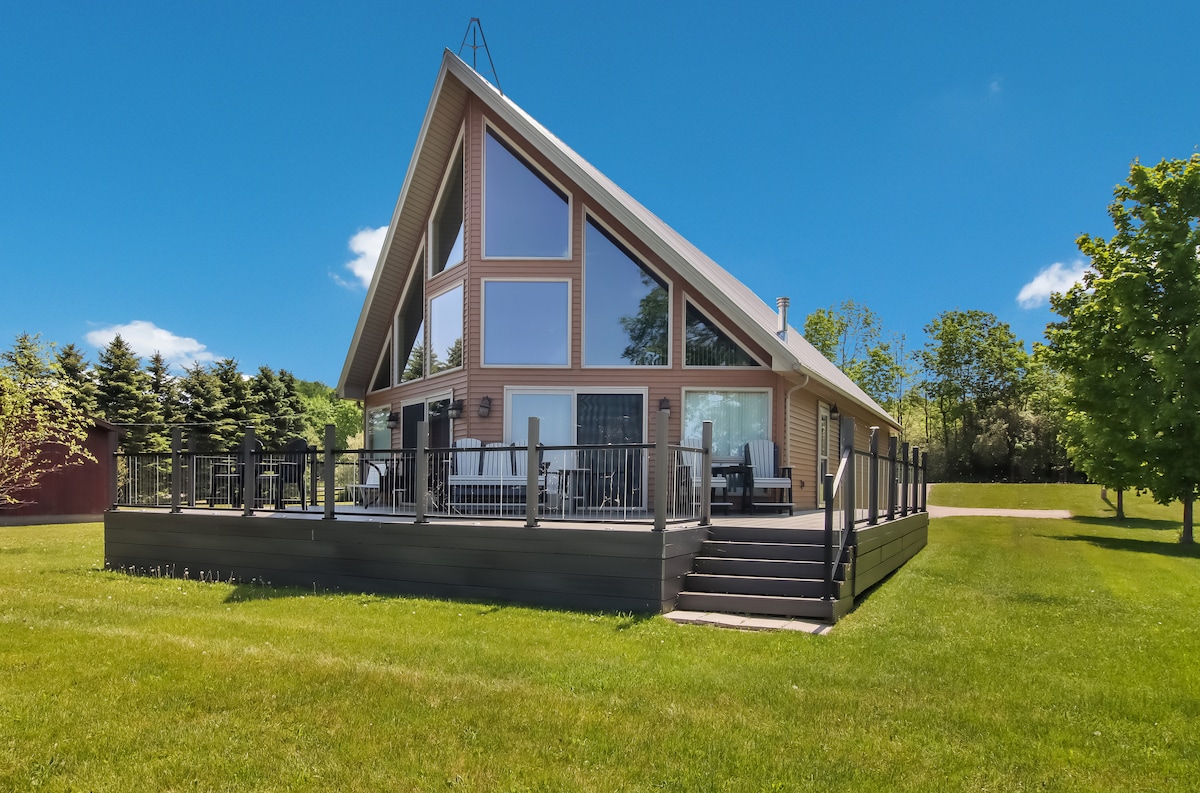 Disfruta de las cuatro estaciones con hermosas vistas panorámicas. Una suite privada con cocina americana, baño completo y zona de bar con 2 taburetes. Cerca de bodegas, playas, senderismo, ciclismo y el Parque Nacional Sleeping Bear y el lago Míchigan. Lago Herring al otro lado de la calle. También se incluye el acceso al muelle (para caminar/sentarse) y kayaks bajo tu propia responsabilidad. Crystal Mountain a quince minutos en coche. Fogata en el patio trasero para uso de los huéspedes. Nota: En invierno, la entrada es empinada, por lo que necesitarás un vehículo con tracción en las cuatro ruedas.