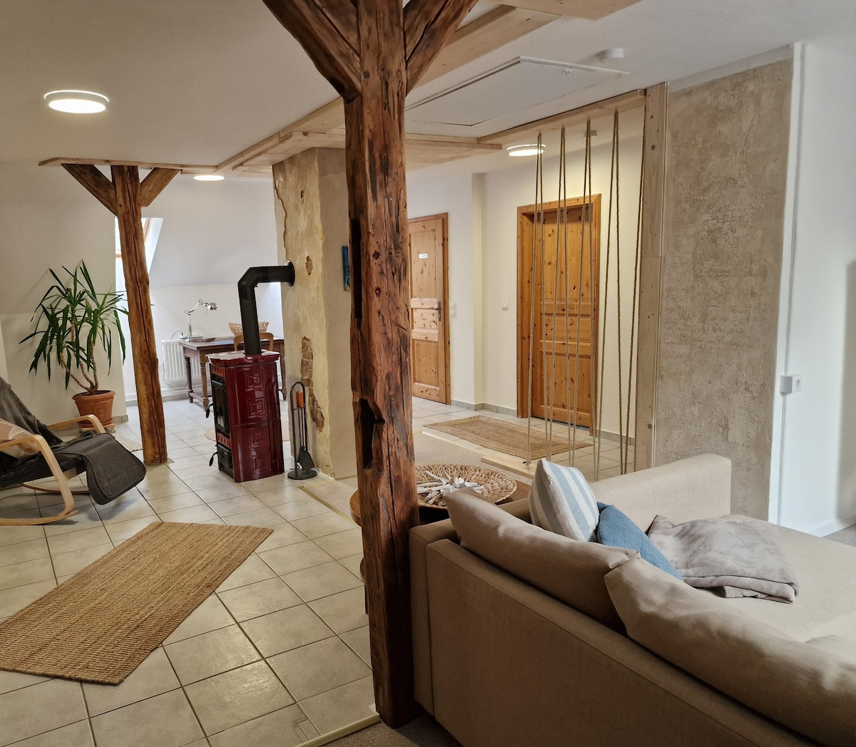 Loft romántico para vacaciones individuales en el mar Báltico. En el corazón de Lütjenburg, no muy lejos de la bahía de Hohwachter, varias playas (5-7 km) te invitan a nadar. Vigas viejas, celosía, yeso crudo. Masonería original y tablones antiguos. La casa es cruda y original, no muy renovada. Las migajas caen del techo y las grietas proporcionan aire fresco. El ático es cualquier cosa menos incómodo. Tiene estilo. Puedes esperar 29 m² de espacio en la casa de entramado 100 años de antigüedad.