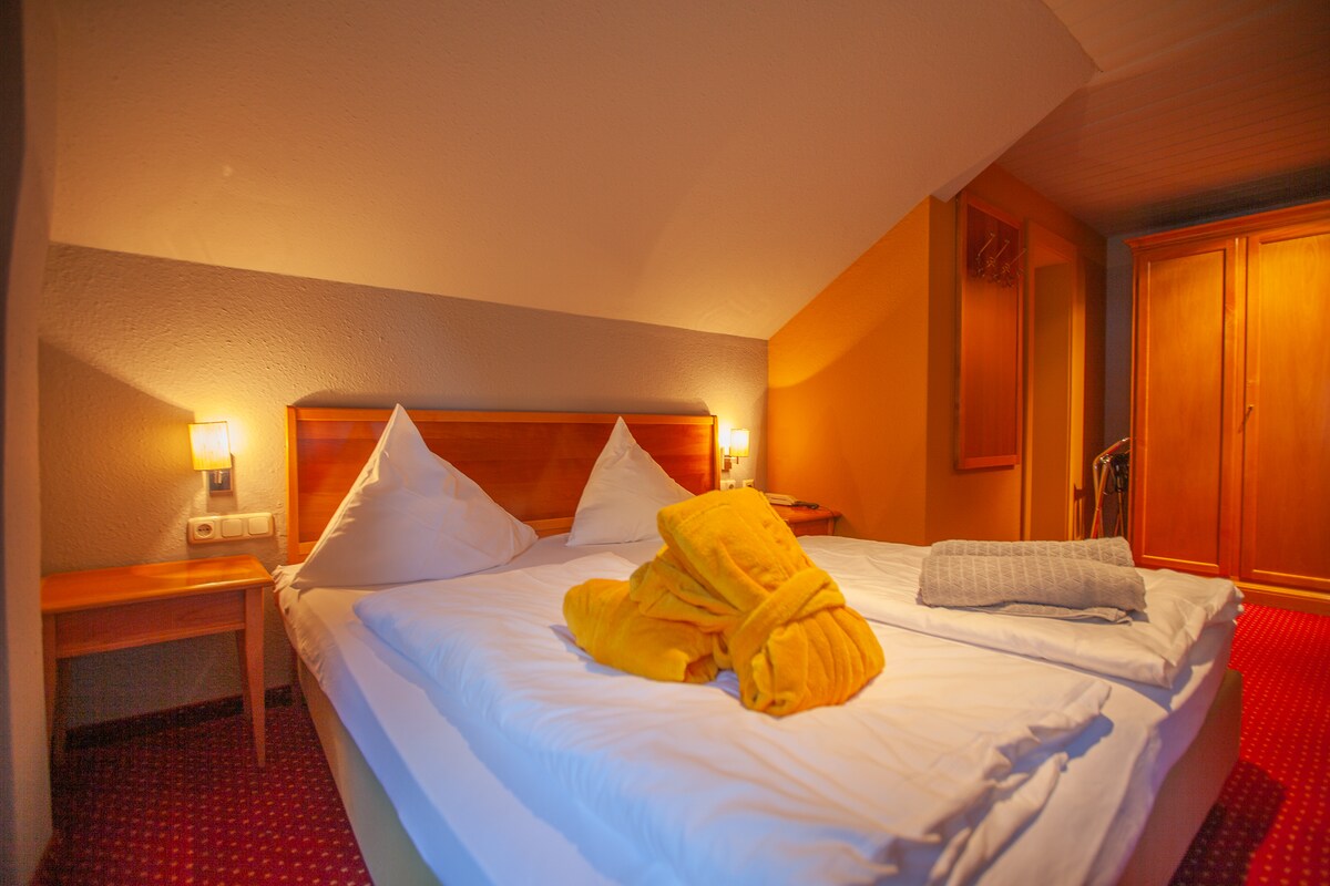 En los chalets superiores (70-96 metros cuadrados) hay dos dormitorios separados, una sala de estar separada con chimenea de diseño y un acogedor sofá cama. Además, estos chalets ofrecen una cocina y un comedor, así como un hermoso balcón con excelentes vistas a la montaña. Cuarto de baño con ducha de vapor grande grande (sala de vapor) y WC separado. Bañera adicional previa solicitud.