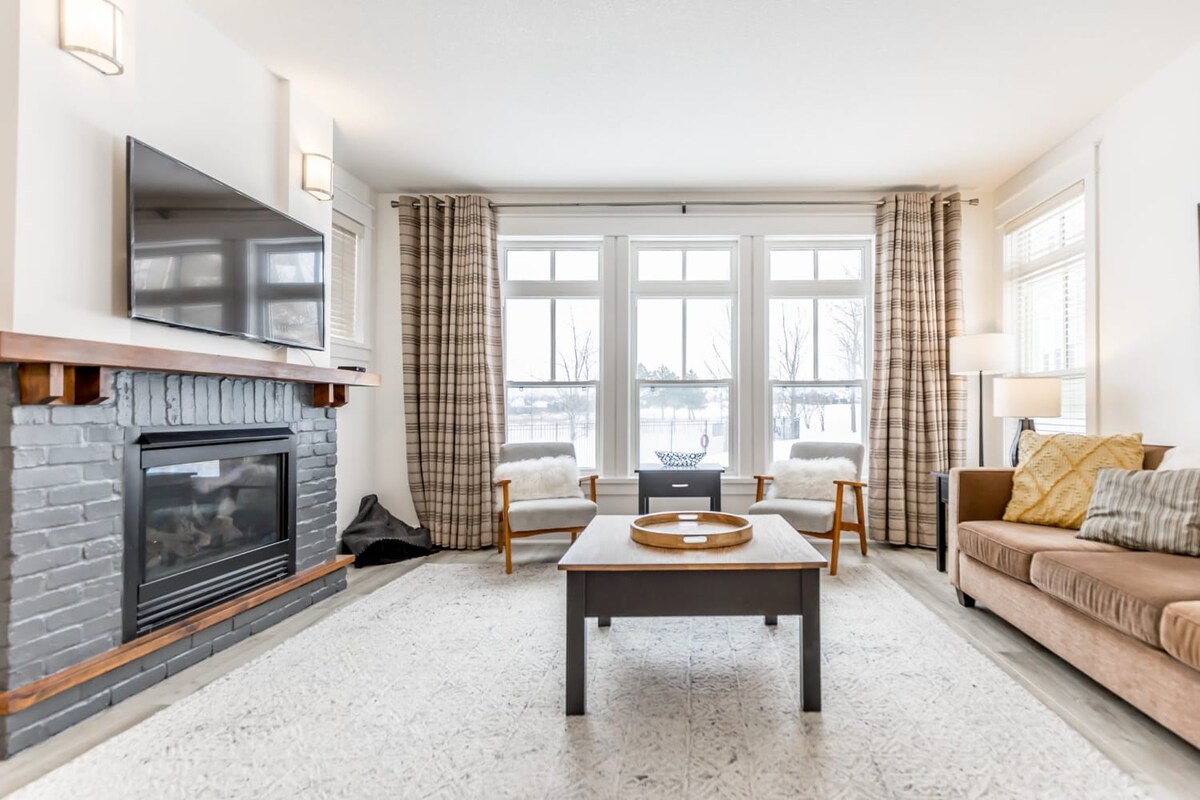 SKI IN AND SKI OUT from the back deck (snow dependent)!! Notice the amount of comfortable seating for NINE PEOPLE around the TV that many other places are without. At the end of a long ski day having a comfortable place for everyone to sit is what most Chalets are missing. Enjoy our family’s beautiful renovated GROUND FLOOR chalet with 2 Bedrooms, 2 Baths, 6 Beds conveniently located next to the Blue Mountain Inn. Blue Mountain Village is a 7 minute walk away. Location, Location, Location