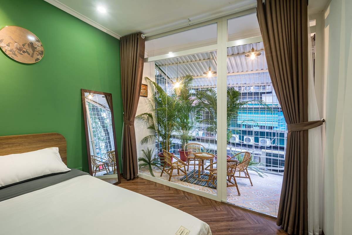 GREEN es un apartamento de 40 m² perfectamente situado en el casco antiguo de Hanói. Ubicado en el tercer piso, se abre a una exuberante terraza compartida para un refugio tranquilo sobre las bulliciosas calles. Estás a solo 1 minuto a pie del lago Hoan Kiem, del animado mercado nocturno y de la famosa calle Ta Hien. Nota: la música y el ruido de la calle Hoan Kiem Walking Street se pueden escuchar de viernes a domingo entre las 7:00 p. m. y las 11:00 p. m. ¡Disfruta explorando la ciudad desde este oasis céntrico y frondoso!