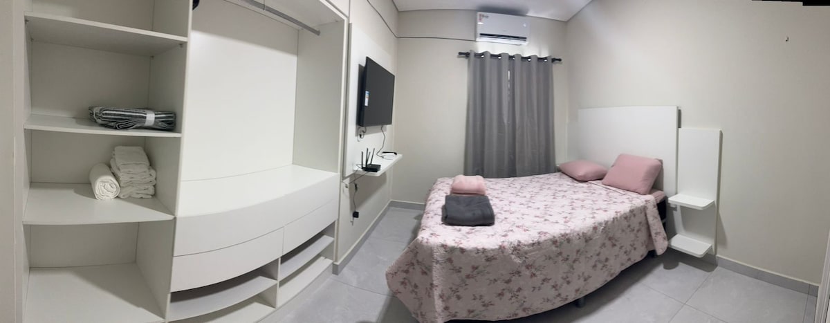 ¡Excelente relación calidad-precio! Casa con 1 suite y cocina americana. Tiene capacidad para 4 personas. Aire acondicionado, Wi-Fi, entrada exclusiva, privacidad. A 3,5 km del centro de Boa Vista, a 3 km del aeropuerto. A 3 km del complejo Ayrton Senna y a 1 km del parque Anauá. ¡Uber al centro económico! En un radio de 500 metros, hay 2 farmacias, 2 supermercados y una variedad de snacks. Carril bici a 100 metros, ofrecemos bicicletas y recorridos opcionales por la ciudad.