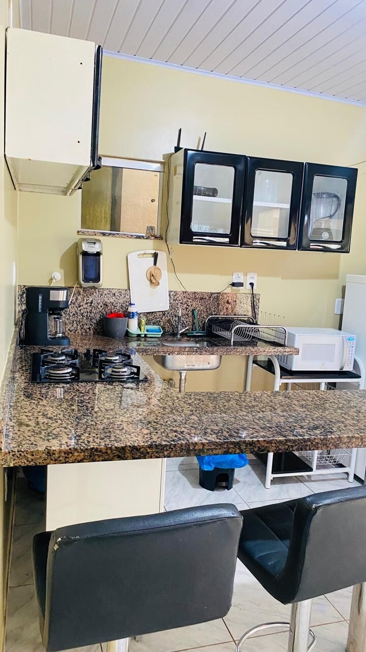 Kit net próxima ao centro da cidade,teatro municipal,principais pontos turismos e a 10 minutos do aeroporto,com até três camas,ar condicionado,tv,geladeira,fogão,mesa de jantar e todos os utensílios domésticos de primeira necessidade,local tranquilo e com privacidade.
