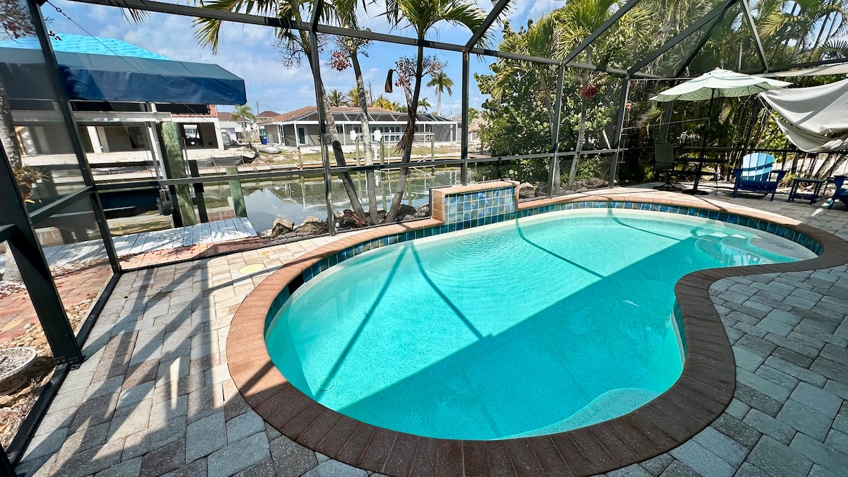 Te doy la bienvenida a Pelican House, una casa luminosa y espaciosa en Florida, diseñada para la diversión familiar y la relajación total. Este hermoso alojamiento de 4 dormitorios y 2 baños cuenta con una piscina climatizada gratuita y un diseño abierto y soleado, perfecto para disfrutar del estilo de vida tropical de Cape Coral. Las grandes puertas corredizas del comedor, el gran salón, la cocina y el dormitorio principal llenan la casa de luz natural y ofrecen acceso directo a la zona de la piscina, donde se puede nadar, tomar el sol o disfrutar de las comidas al aire libre. El lanai y la c