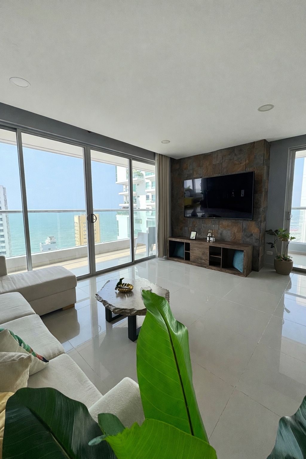 ✨ Bienvenido a tu refugio en Cartagena: un apartamento de lujo en piso alto frente al mar, con dos balcones privados y vista panorámica 180° al Caribe y la bahía. Diseñado para tu confort, ofrece sala moderna con ventanales, cocina equipada, WiFi rápido y check-in digital. Relájate en la piscina infinita, disfruta el bar o entrena en el gym con vista al mar. En Bocagrande, a pasos de la playa y cerca de la ciudad amurallada, tu estadía será inolvidable. 🌊🌴