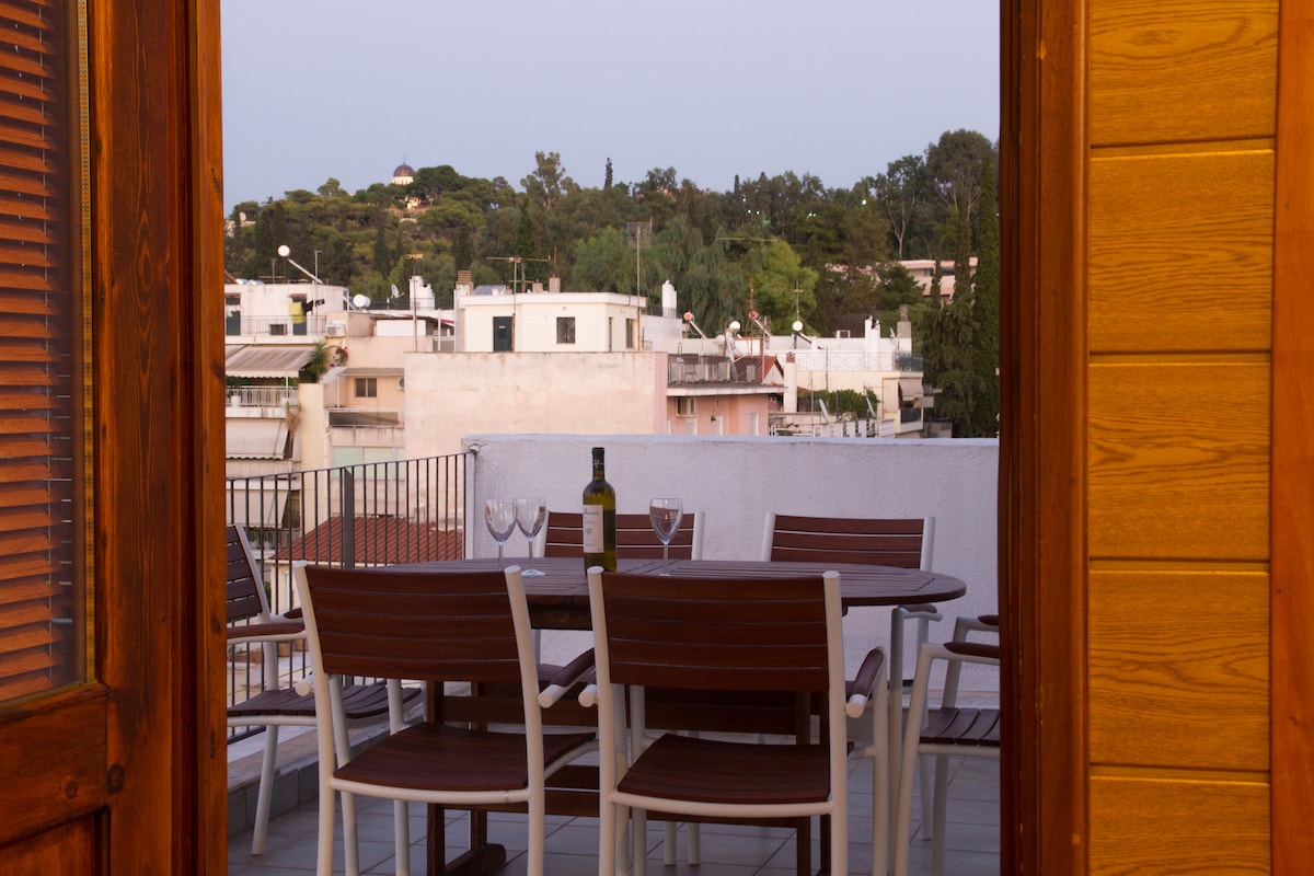 Ático con vistas a la Acrópolis en el centro de Atenas