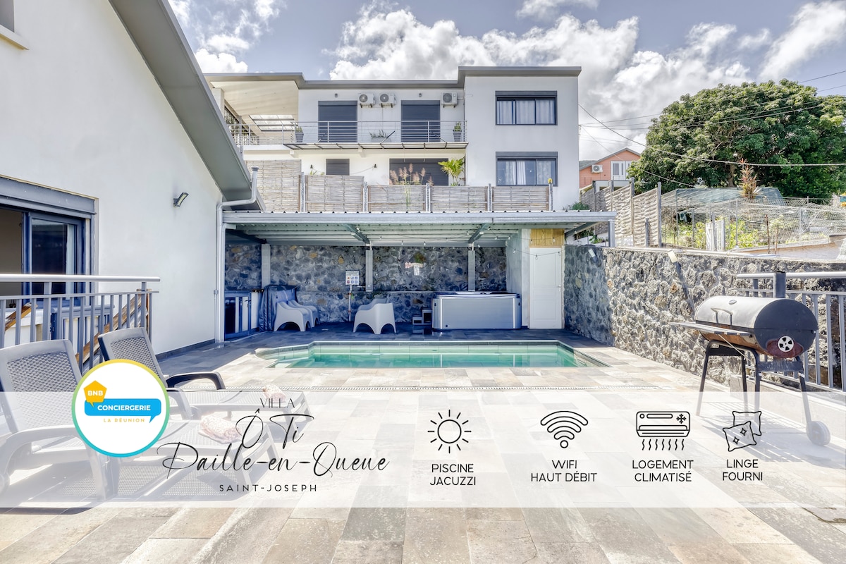 Maison « Villa Nueva » ¡Bienvenido a nuestra casa clasificada Amueblada de Turismo de 3 estrellas! Situada entre Ravine Blanche y Bois d 'Olives, a 5 minutos de la saga del ron y a 10 minutos del centro de la ciudad de Saint-Pierre, del mar y de todos los servicios, en una urbanización tranquila, esta casa totalmente equipada es ideal para que las familias que se alojen allí puedan descubrir nuestra hermosa isla y relajarse.