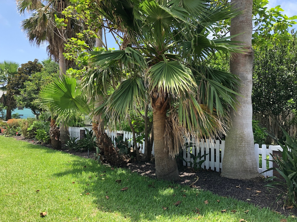 Short walk to beach with no highway to cross. About 6 miles west of seawall attractions in a quiet beach community. Perfect for couple or small family. Queen bed and sofa with queen pullout. Fast Xfinity WIFI & 55” Roku TV. Soap, shampoo, towels, cookware, utensils, blenders, coffee are all provided. Downstairs laundry with washer & dryer also grill, umbrellas, canopy, chairs, bikes, various toys and a beach cart. Plenty of good nearby food options. Discounts for full week or month!