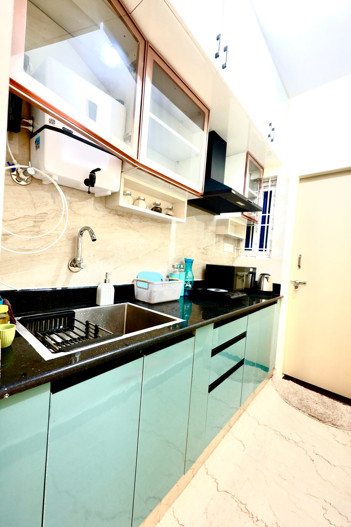 Un alojamiento acogedor y decorado con mucho gusto en el corazón de Electronic City. Con una sala de estar luminosa, un comedor elegante y un dormitorio cómodo con un espacio de trabajo dedicado, es ideal para familias, amigos, parejas y viajes de trabajo por igual. El alojamiento cuenta con una cocina funcional totalmente equipada, lo que hace que las estadías más largas sean cómodas y agradables. Diseñado cuidadosamente con el amor y la comodidad en mente, nuestro objetivo es hacer que su estadía sea cálida, relajada y memorable.