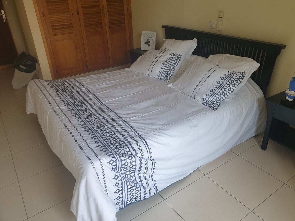 Cozy apartment in a secure residence, generator, well, and cleaning included—perfect for a wonderful stay solo or as a couple! - Bedroom with double bed, airco - Large living room: TV, CanalSat, airco, high-speed Wi-Fi - Bathroom with shower and toilet - Bed linen/towels provided - Fully equipped kitchen with loggia - parking Located in Makepe BM, just 20 meters from the cobblestone street, close to shops, restaurants, and public transport. A calm and welcoming setting for an enjoyable stay!