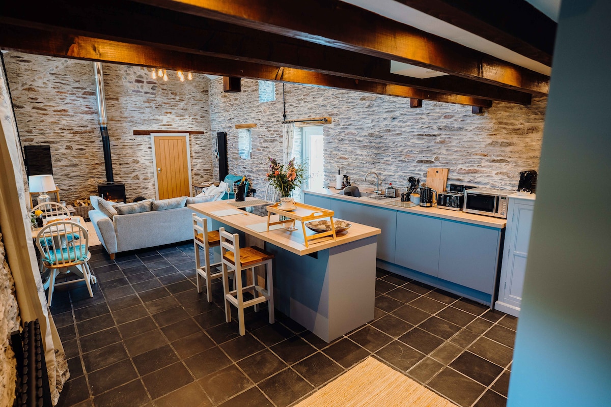 Romántica casa de campo de Pembrokeshire en un hermoso terreno de 3 acres con sauna, estanque natural (depende de la lluvia), sala de juegos y kayaks. Paseos por la colina en la puerta, impresionantes playas y paseos por los acantilados cercanos. Contempla las estrellas desde una cómoda cama tamaño king. Acurrúcate junto a una estufa de leña (madera gratuita). Amplio baño con bañera, ducha y calefacción por suelo radiante. Cocina bien equipada con cafetera. Zona de estar exterior cubierta con chimenea y barbacoa. Internet de fibra, TV inteligente (Netflix, etc.). Se admiten 2 perros que se porten bien.