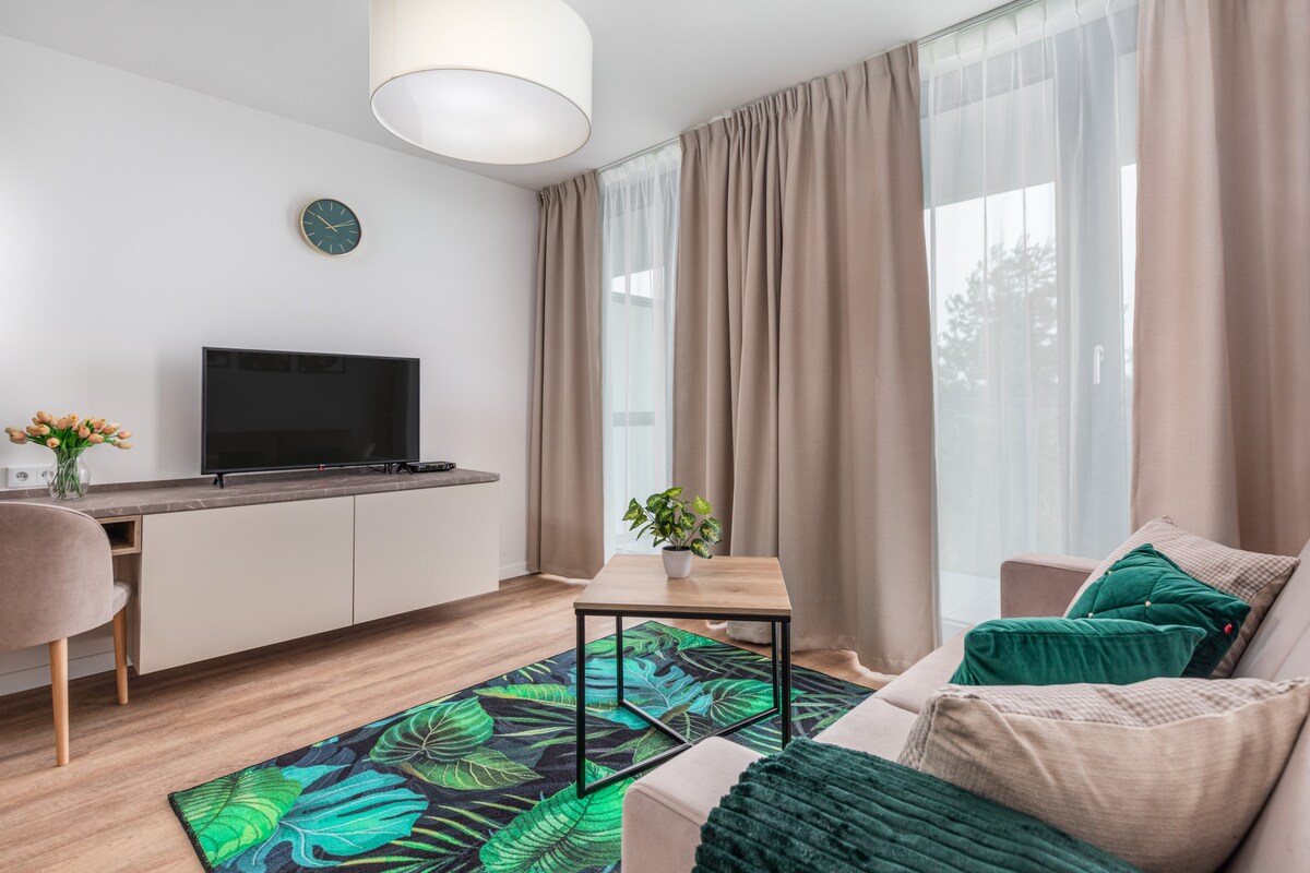 Apartment PINE es un apartamento cómodamente equipado en una zona tranquila de Mielna. Decorado en un estilo moderno y práctico. Se encuentra a 350 metros de la playa y a 650 metros del centro del pueblo. Situado en una zona tranquila y silenciosa del pueblo, lo que garantiza la relajación y el descanso.