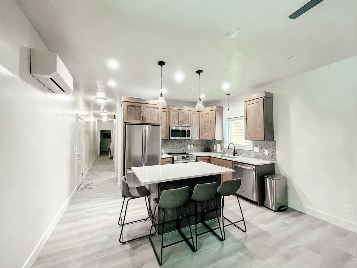 Ven a reunirte alrededor de este alojamiento totalmente renovado con un gran diseño abierto que se asegurará de darte mucho espacio para reuniones familiares. A menos de 5 minutos en coche del aeropuerto, esta casa del lado oeste está cerca de tiendas y restaurantes cerca del centro de la ciudad. Se admiten mascotas. Con un gran televisor 4k en la sala de estar, cartas/juegos de mesa, espacio separado con una mesa de juegos para niños en el sótano y muchos asientos interiores y al aire libre, podrás disfrutar de tu tiempo para crear recuerdos. ¡Sé nuestro huésped!