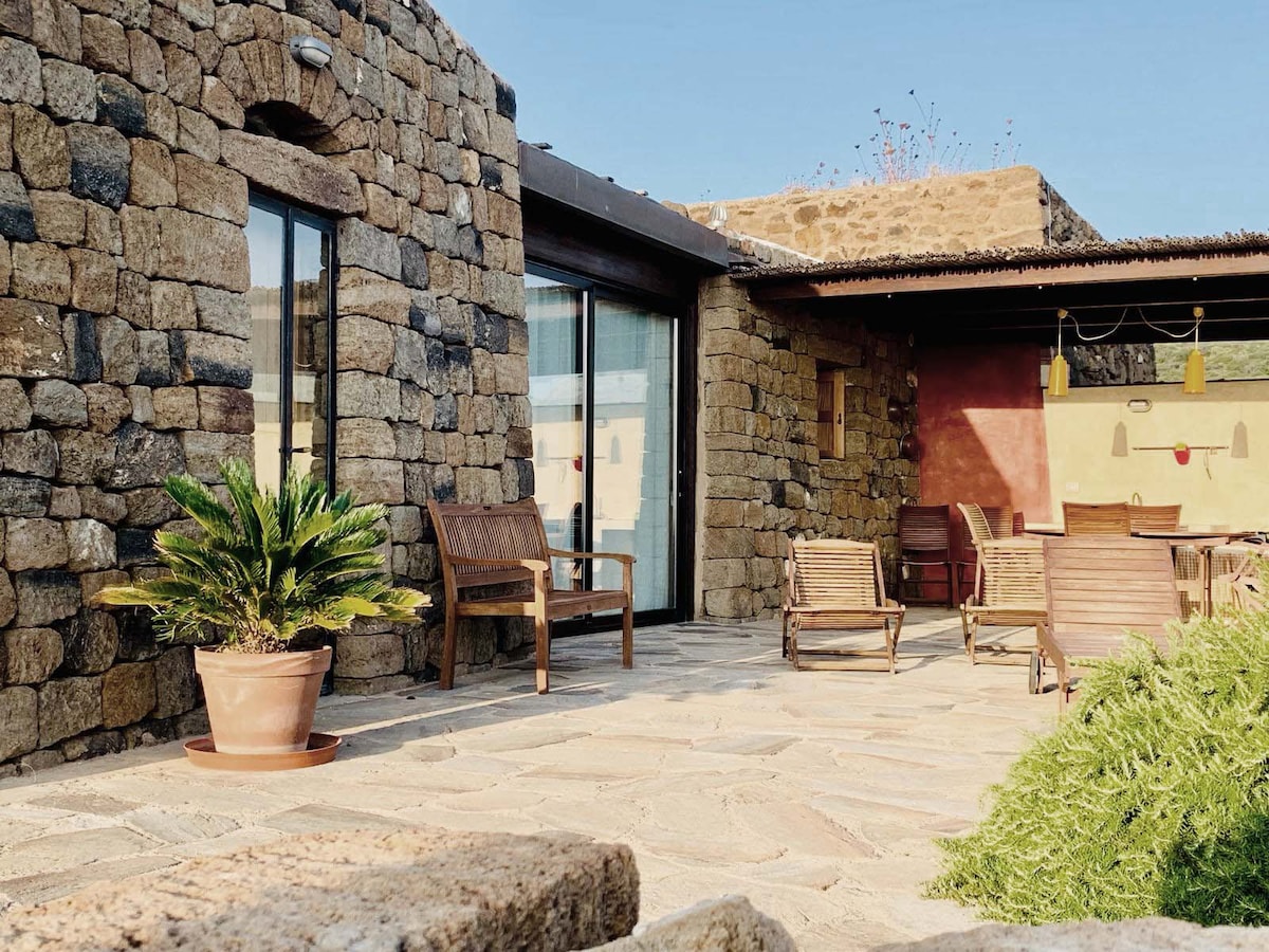 Se volete scoprire l'anima di Pantelleria il nostro dammuso è quello che cercate! Con vista mare, terrazza solarium, cucina esterna e piscina, circondato da vigna e olivi, è situato nella zona nord-est dell'isola, molto pratica e allo stesso tempo tranquilla! La proprietà è alimentata al 100% da energia fotovoltaica per ridurre il nostro impatto sull'ambiente e quello delle vostre vacanze! Il dammuso non fa parte di alcun resort e è gestito direttamente da noi che viviamo sul posto! :)