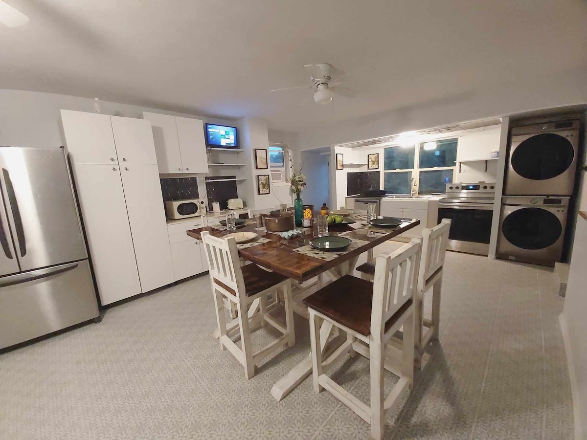 ¡Aléjate de todo en esta pequeña casa de contenedores inmaculada! Diseñada para maximizar el espacio y bellamente amueblada para proporcionarte todas las comodidades de un hogar. Cocina totalmente surtida, acogedora sala de estar, lavandería en la unidad y 2 terrazas al aire libre donde podrás relajarte y disfrutar de la puesta de sol, tal vez incluso avistar algunos ciervos. Entorno tranquilo, convenientemente ubicado a solo unos minutos en coche de la ciudad. ¡Se admiten estancias prolongadas!