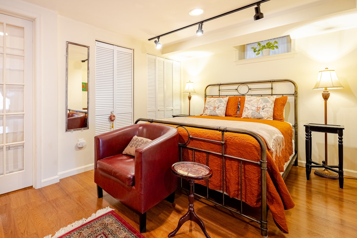 A recently renovated private suite only 1.5 miles from town center. Welcoming ‘walking’ neighborhood of architecturally diverse homes inspired by the Garden City Movement of early 20th C. Near both Interstate 81 and 70, Museum of Fine Arts, Whitetail Ski Resort, New Baseball Stadium, Antietam, Gettysburg, Frederick, C&O bike trail, wineries, outlets. Guests enjoy stays for tourism, conferences, trainings, the MD Int’l Film Festival, JFK 50, family visits and artist retreats.