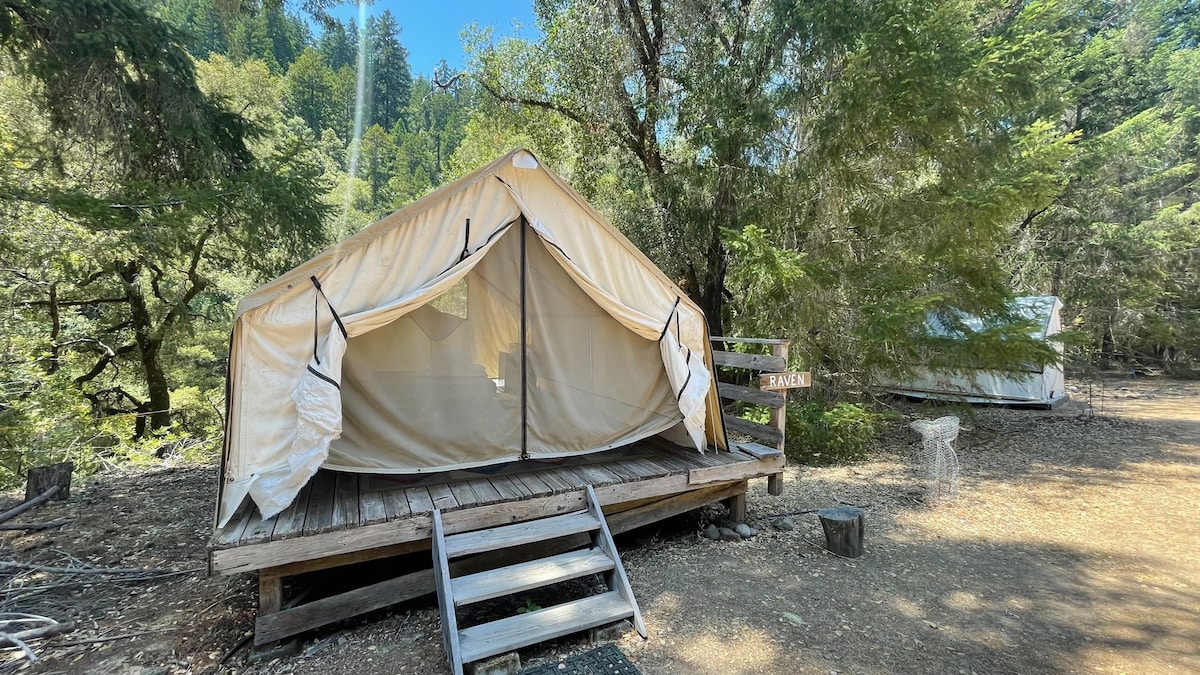Enjoy a private forest camping hut. Rustic yet designed with comfort in mind. Nestled among the Redwoods a few miles from the Pacific Ocean. This is a place for you to disconnect and reconnect with the surroundings. To unplug and decompress from busy life. 5 miles from our town of Elk and a nice coastal drive to historic Mendocino. Our calendar is open 3 months in advance. If you like to to be on our waitlist, send us your email address.