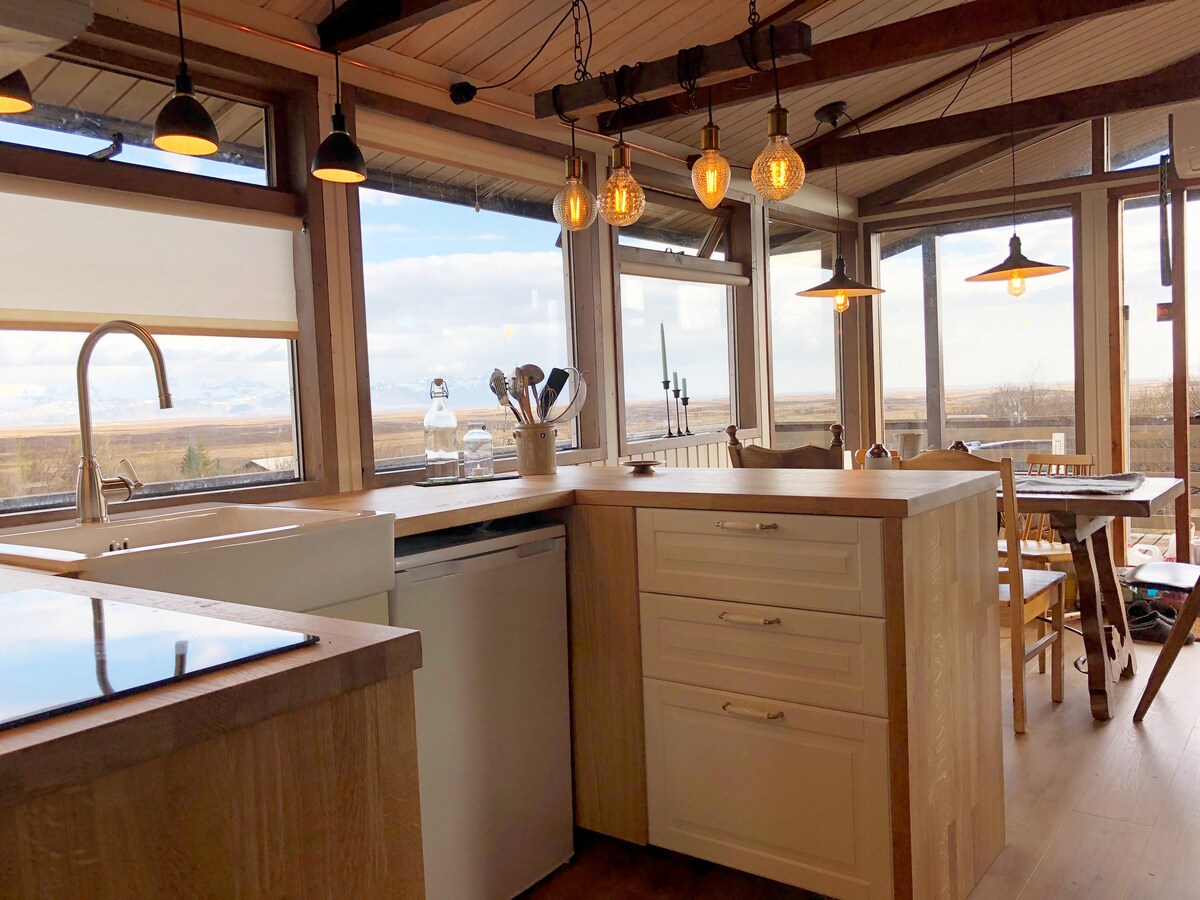Una escapada tranquila y silenciosa con increíbles vistas al mar. Ubicado en el hermoso fiordo llamado «Hvalfjörður». A solo 45 minutos en coche de la capital. El interior fue completamente renovado en 2024. Puedes relajarte en el jacuzzi y disfrutar de unas vistas increíbles del horizonte durante el verano y es posible que veas la aurora boreal durante el invierno. Es una ubicación perfecta para excursiones de un día para descubrir la península de Snæfellsnes y el círculo de plata y tampoco está lejos del círculo dorado.