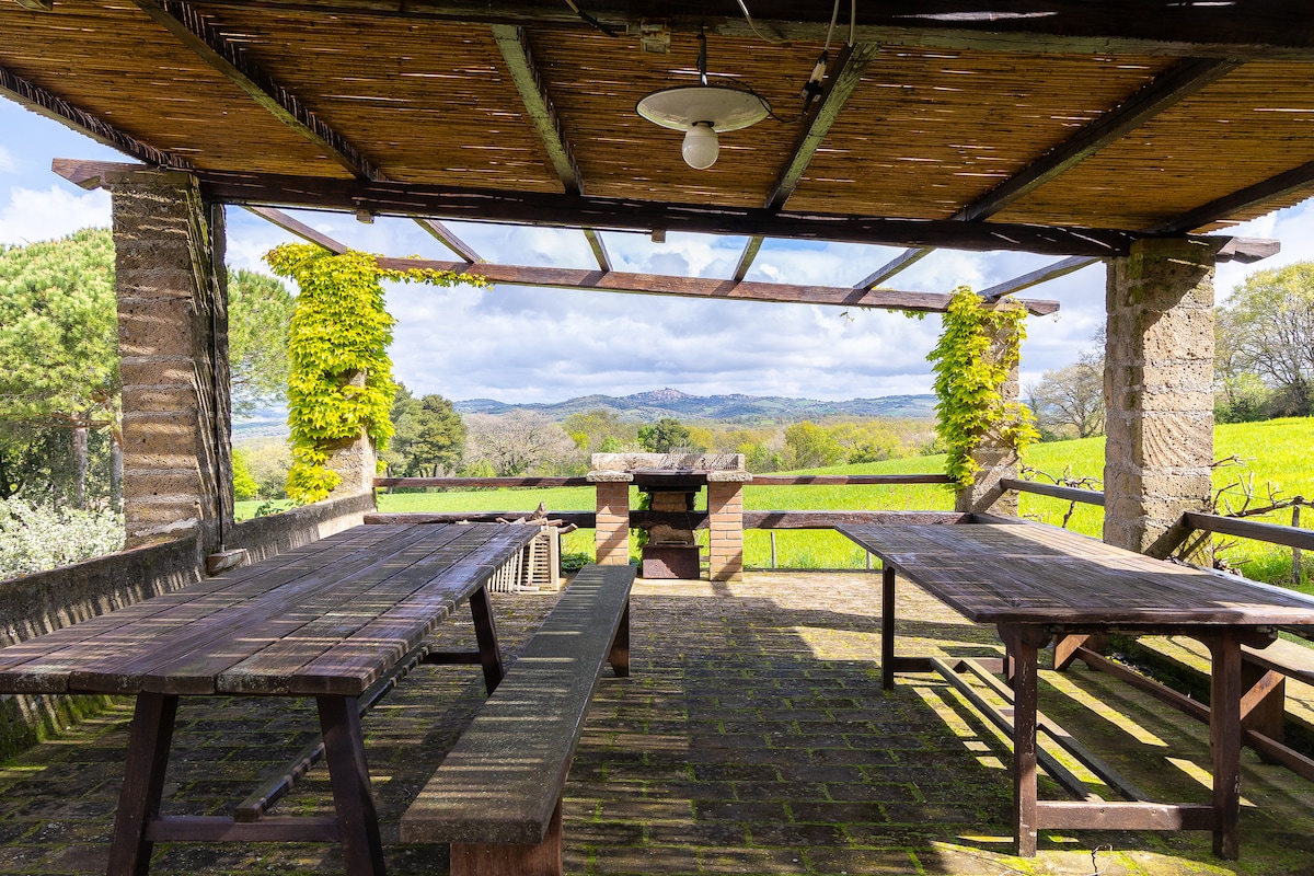 Villa boutique inmersa en el bosque, en el interior del Parque de los Ciminos, en las laderas del monte Cimino (800 m s.n.m.) La propiedad tiene unos 450 metros cuadrados y está rodeada por unos 1,5 hectáreas de jardín/bosque de pinos. La villa está equipada con una sauna y un jacuzzi de leña privado en el bosque. Una casa diseñada por uno de los mejores arquitectos del centro de Italia y hábilmente amueblada.