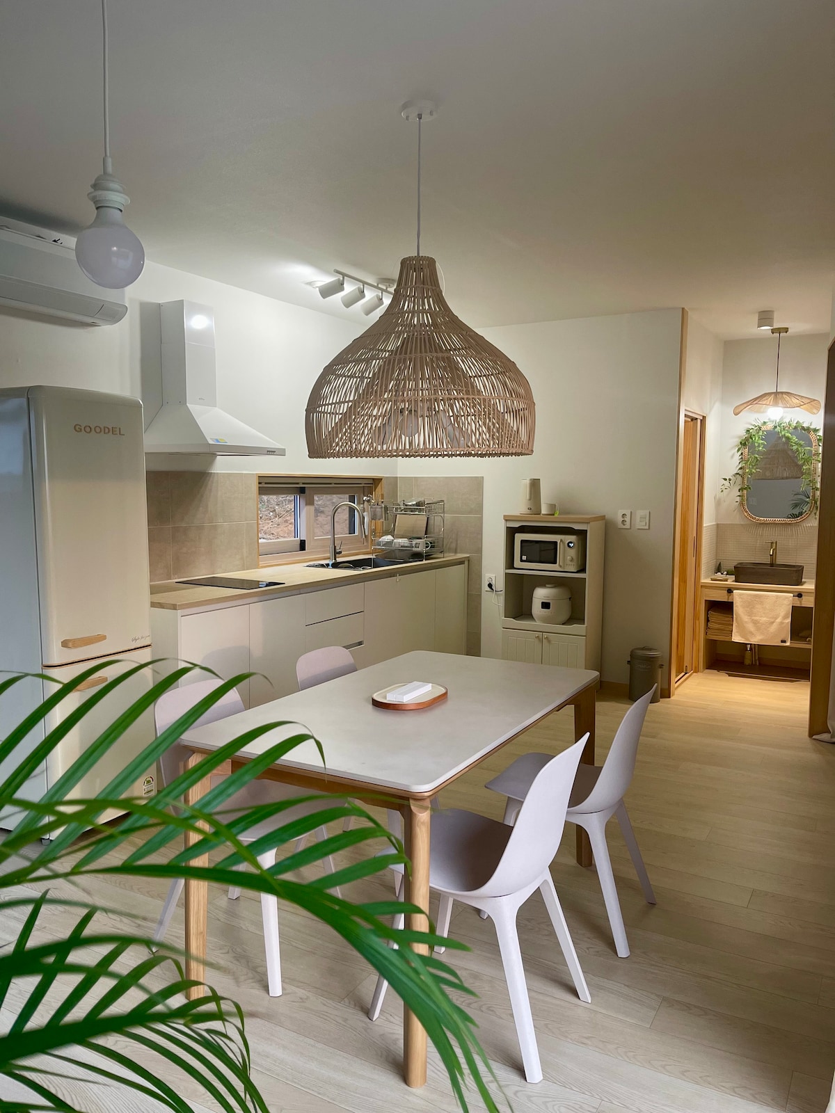 J-House es un alojamiento tipo casa de campo que se completó en septiembre de 2023. Es una casa construida por nuestra pareja con las mejores especificaciones, desde el diseño hasta los materiales. 🏡Nuestra Casa Jay se divide en un cuerpo principal y un anexo. El cuerpo principal es 53 pyeong y el anexo es 12 pyeong. Hay un espacio en el anexo donde se puede asar y comer carne. Geumjandi se planta en 🌳el patio y es hermoso con árboles de arce y flores. Además, la casa J está en el patio. 🐈Aquí vive un gato siamés. Hay una famosa ruta de senderismo Baekhwasan en Taean a solo cien 🏞️metros frente al alojamiento. Si subes la montaña durante unos 10-15 minutos, puedes ver la hermosa vista del mar desde la montaña. El mercado de Taean y el centro de la ciudad están a 🚘5 minutos en auto. A unos 10-15 minutos en coche del 🌅alojamiento, hay playas y mercados de pescado como Mongsanpo Manipo, etc. Puedes comer puestas de sol rojas y un delicioso sashimi. 🏡 Debido a la naturaleza de la casa en el campo, pueden aparecer insectos. Desinfectamos con regularidad. En caso de insectos, usá el medicamento proporcionado.