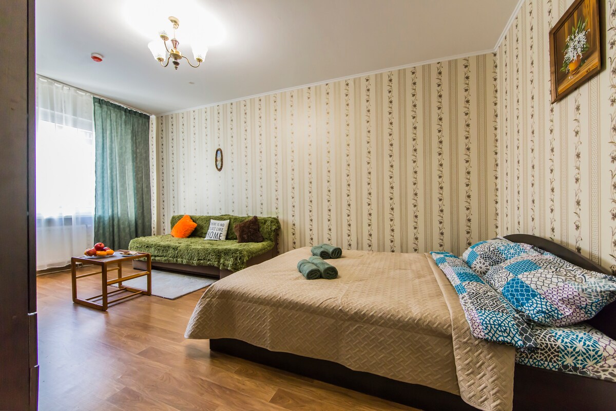 Un cómodo apartamento grande con una buena y nueva renovación con todas las comodidades.En la mejor zona segura y zona más verde de Kiev. Cerca de la casa hay un gran parque, un canal, un río, tiendas, restaurantes. También el metro y el transporte público están a poca distancia.La mejor opción para un fin de semana o una larga estancia en la capital de Ucrania