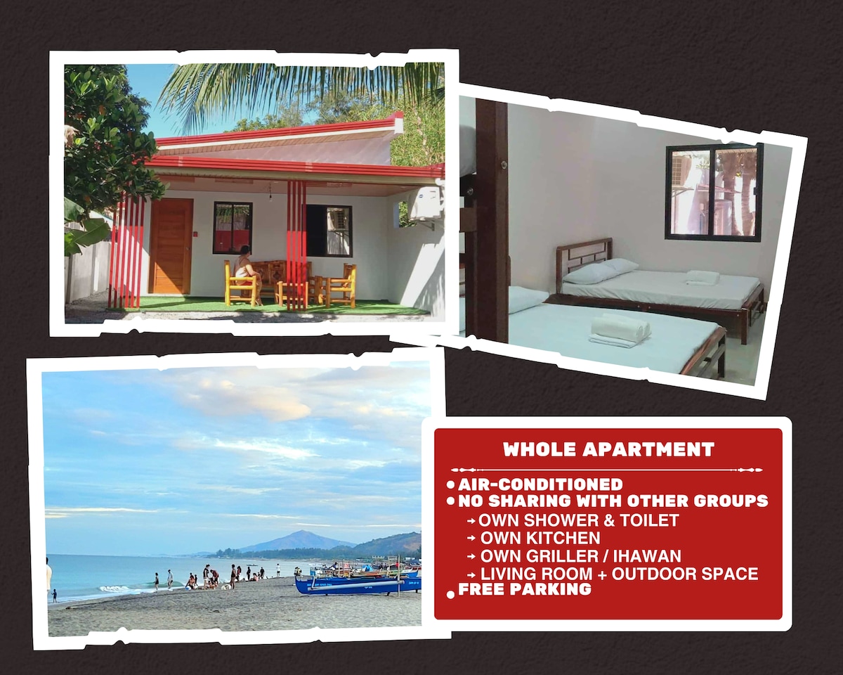 📍A 2 minutos a pie de San Felipe, Zambales Beach 📍a solo un kilómetro de la popular playa de Liwliwa ◆ Unidad con aire acondicionado ◆ ¡NO COMPARTIR CON OTROS GRUPOS! - Inodoro y ducha propios - Cocina propia (totalmente equipada) - Parrilla propia - Espacio propio al aire libre ◆ Estacionamiento GRATUITO en el alojamiento --------------------- ¡Te damos la bienvenida a las cabañas costeras de Ugalde, unidad B! UBICACIÓN: 15°03'39.6"N 120°03'40.9"E (Copia y pega en Google Maps).
