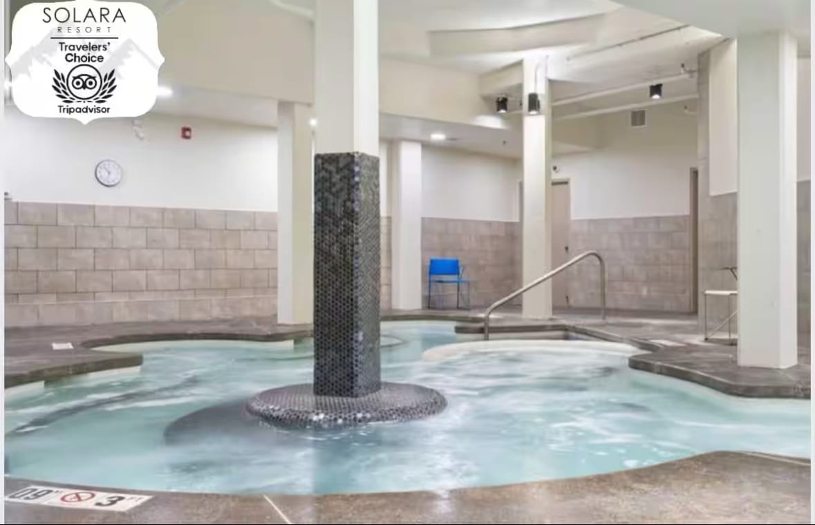 Solara Resort Hotel, habitación con cama king, pileta, jacuzzi y aire acondicionado