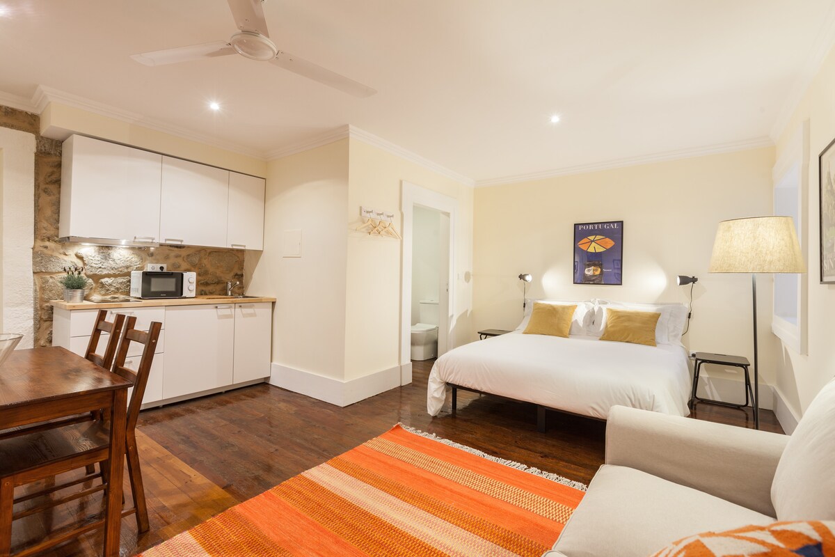 Viva a história de Braga a partir de um refúgio exclusivo sobre os telhados da cidade. Esta acolhedora suite em águas furtadas combina o charme arquitetónico original com o conforto moderno. Localizada em pleno Centro Histórico, a apenas 100 metros da Sé Catedral e do Arco da Porta Nova, é o ponto de partida ideal para explorar a pé os tesouros da "Cidade dos Arcebispos".