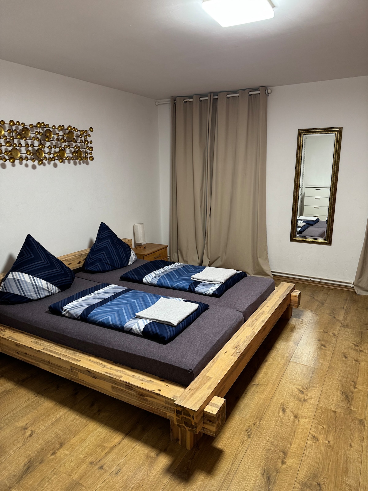 Apartamento tranquilo en las afueras de Berlín. En dos plantas podemos alojar hasta 4 personas. Ideal para todos los que quieren conocer Berlín, pero quieren terminar la noche cómodamente y en un ambiente tranquilo. Una ventaja sería el viaje en coche, que se puede estacionar de forma segura frente a la propiedad. Se puede llegar al metro en coche en unos 8 minutos (a pie en unos 30 minutos), hay muchas áreas de estacionamiento gratuitas. Los supermercados están a pocos pasos.