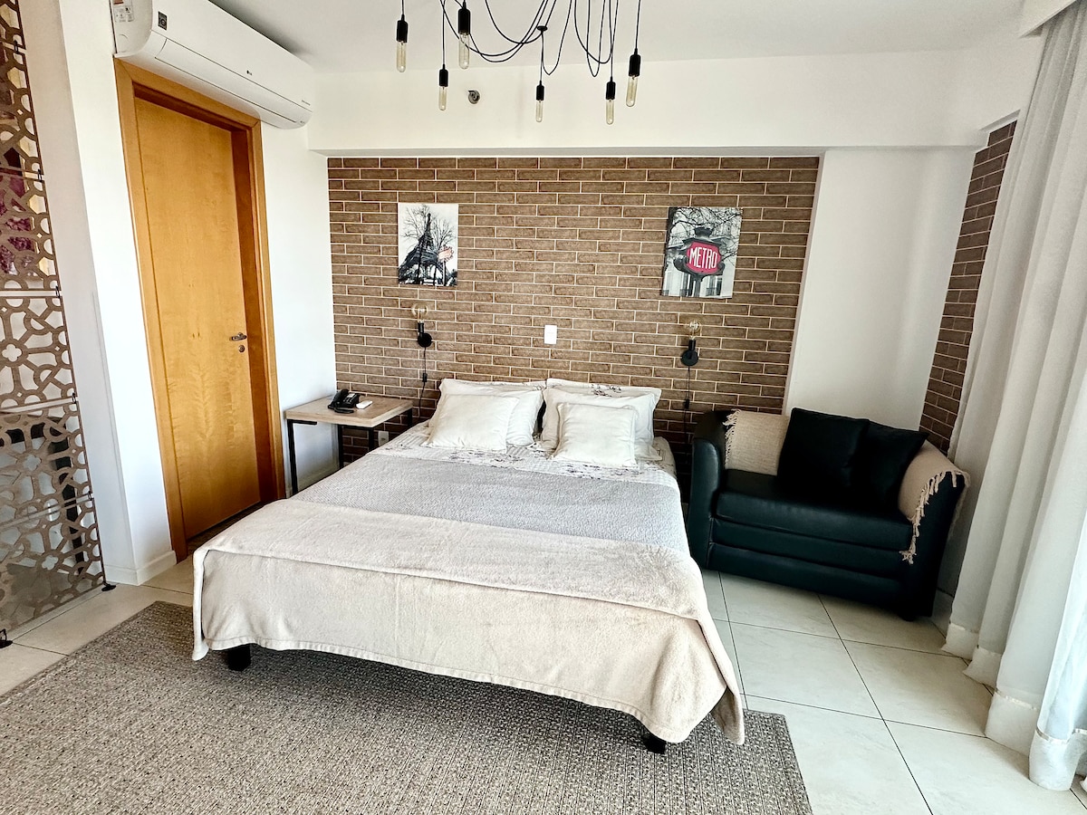 "Excelente ubicación - Centros comerciales y restaurantes cercanos - Fácil acceso, check-in y check-out realizados de forma rápida y eficiente". • Pileta en la azotea • Gimnasio • Restaurante panorámico • Cama doble doble tamaño Queen - Colchón inflable con bomba eléctrica. • Aire acondicionado. • Wi-Fi • Microondas y placa de cocina • Minibar •Toalla y sábana - Cafetera Nespresso (sin cápsulas) Nota: Los MENORES de 18 años que viajen sin sus padres deben llevar una autorización notarial. OBS: NO SE PUEDE FUMAR