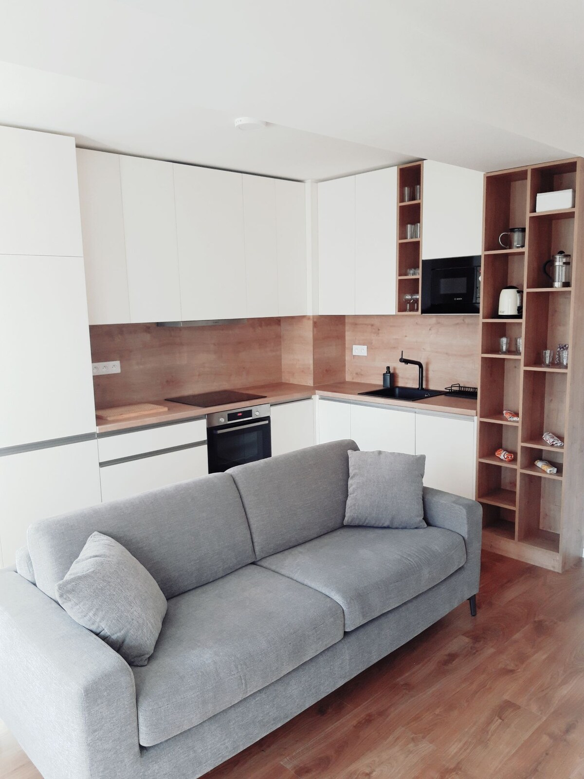 Bratislava has two faces - the modern city and the historic part. Our apartment is located in the latter, in a brick building from 1950s. The house itself carries the character of old times, while apartment has just undergone a full renovation in 2025. Centrally located, you are few minutes away from all major attractions, reachable by foot or public transportation. Nearby department store Central gives you the comfort of wide opening hours for groceries, shopping, fitness with a swimming pool.