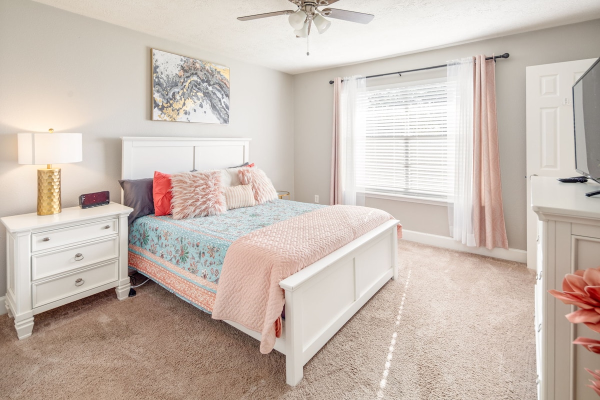¡Recientemente reformado, espacioso y luminoso! Esta casa familiar se encuentra a 3 millas del campus y en la ruta de autobús 34 (FISH CAMP). ¡Todos los muebles y colchones son nuevos! Perfecta para familias con servicios para niños (literas, ping pong, baloncesto, silla alta, parque infantil, etc.) Gran patio trasero con patio y parrilla. Gran aparcamiento y garaje. A pocos minutos de la tienda de comestibles H-E-B, preciosos parques familiares y senderos para bicicletas, una gran selección de restaurantes y Santa's Wonderland. **Política estricta de no mascotas**