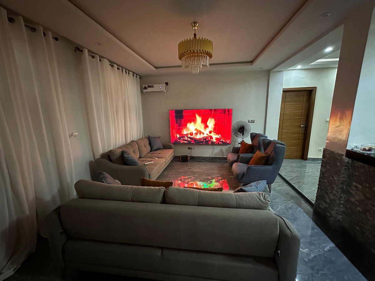 Détendez-vous dans ce logement calme et élégant, pour seul ou un couple même avec un enfant si possible, Près de toutes les commodités, sécurité au top (avec une société de sécurité internationale) électricité et eau 24h/24 au cas où ya coupure groupe électrogène alimenté. avec une femme de ménage du matin au soir 6jours sur 7. Passez vos ses jours inoubliables à Kinshasa heureux. Climatisation dans toutes les pièces, télé smart androïd, soyez le ou la bienvenu(e)