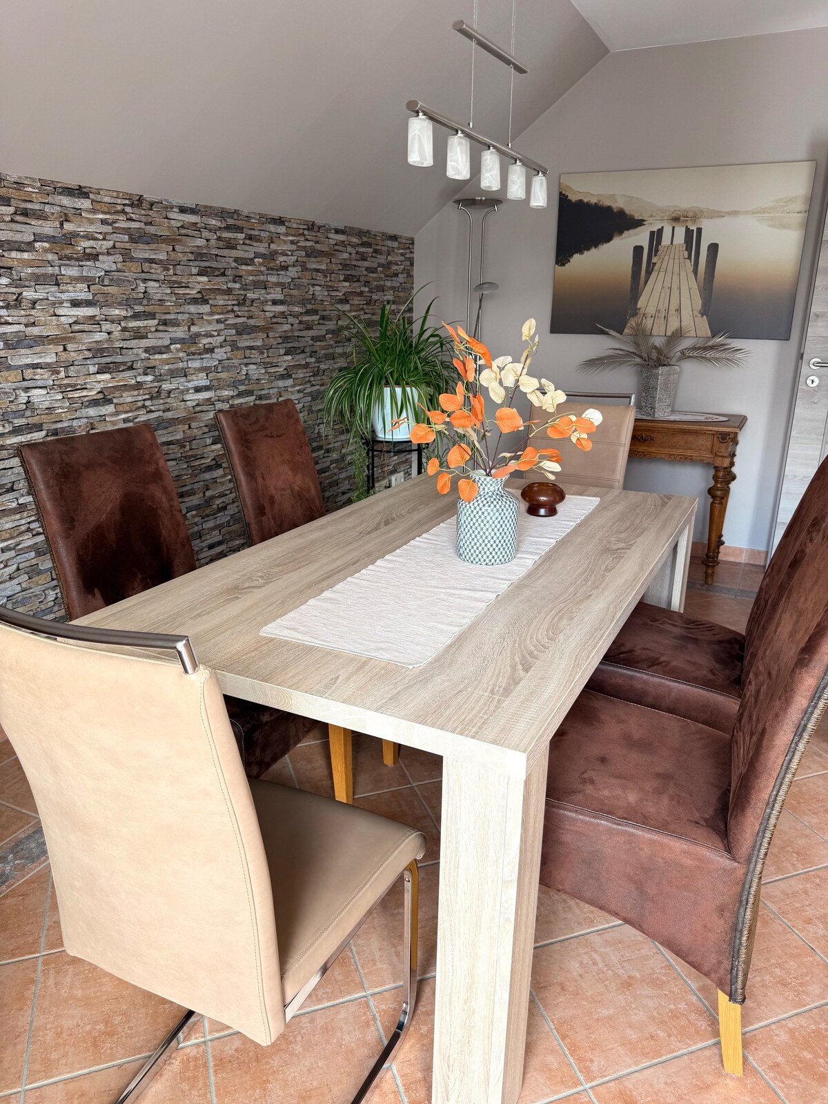 Gran apartamento amueblado y confortable en una tranquila zona residencial en medio del hermoso Taunus para 2 - 7 personas. El apartamento está situado en la primera planta y tiene 116 m². - Amplio salón-comedor con chimenea - Cocina equipada con lavavajillas, horno, microondas y nevera con congelador. Reproductor de CD con puerto USB, trona. - Terraza privada - Debajo de la mesa del comedor hay una mesa de billar - Ropa de cama, toallas, secador de pelo, cuna, trona