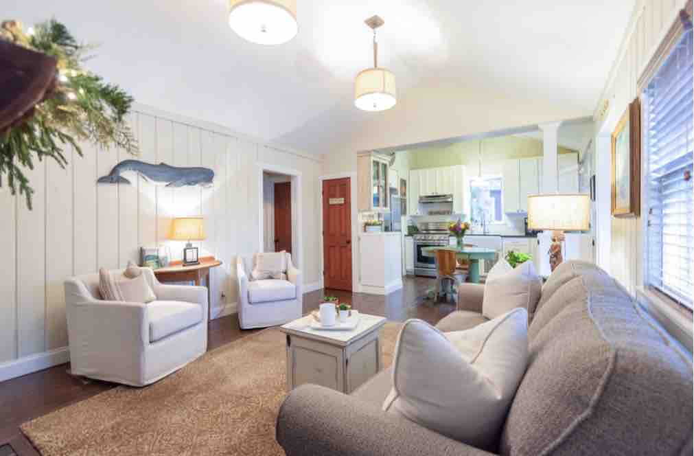 ¡Un apartamento estudio independiente decorado con buen gusto en la parte trasera de una casa en un patio privado vallado a solo 2 manzanas de la playa! Perfecto para una pareja o 2 personas. Disfruta del aire libre y del aire fresco del océano sentado en el bonito conjunto de muebles del patio, junto al bar tiki o junto a la chimenea. Reúnete alrededor de las mesas dentro o fuera con muchos asientos. El estudio está equipado con excelentes servicios, empezando por el enorme televisor inteligente 4K de 82 pulgadas con sonido envolvente, wifi y Amazon Dot. ¡Cocina equipada con electrodomésticos de acero inoxidable!