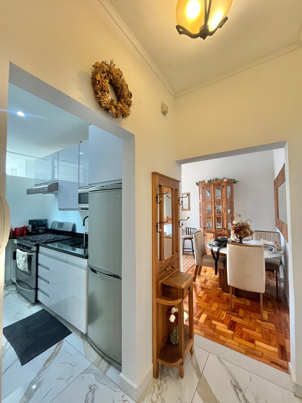 Este apartamento, que ha pertenecido a la familia durante más de 50 años, ahora renovado, enamora a cualquiera de inmediato. Al frente, la montaña del Cristo Redentor, con el bioma predominante de la Mata Atlántica; abajo, las Termas Antônio Carlos, con sus aguas curativas, y los imponentes jardines de la plaza central. Desde la ventana de la sala se puede ver el movimiento de la ciudad. Cafeterías, restaurantes, panaderías, supermercados, estacionamientos y una variedad de tiendas se encuentran a poca distancia.