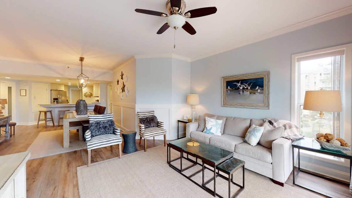 ✨Top 10% Guest Favorite✨ - Gated Beachfront Resort: Golf, Tennis, Pickleball, Pool, Restaurants & Bars! - Gorgeous Sunny Villa w/Panoramic Lagoon & Golf View! - Beautiful & Lush Scenery: Huge Old Oaks dripping in Spanish Moss! - Walk/Bike to Beach ●Walk to Shipyard Golf Club & Pub! ●Modern Coastal ●Sunny 1st Floor ●KING BED Master ●3 XL SmartTVs ●WIFI 287 mps ●Fully Stocked Kitchen ●Walk-in Shower ●Washer/Dryer ●Beach Chairs, Boogie Boards & More! ● BBQ ● Bike & Walk Paths ●Close to Coligny!
