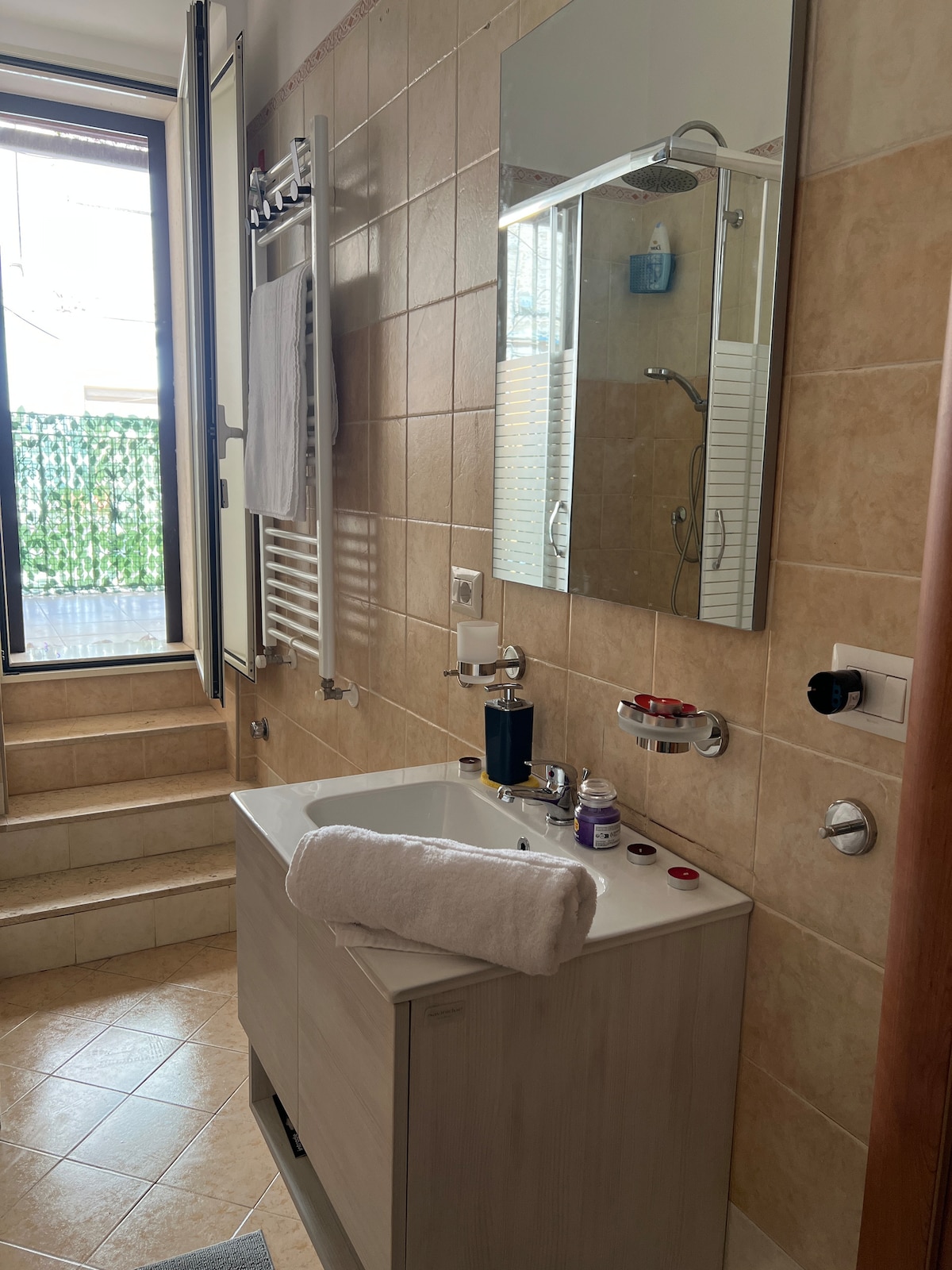 Estudio totalmente equipado con una gran terraza. El baño está equipado con una lujosa bañera doble y una gran ducha para la máxima relajación. Situado en una posición estratégica a solo 300 metros de la estación de tren de Brindisi, ofrece un fácil acceso a Bari, Lecce, Ostuni y otras hermosas ciudades de Puglia.