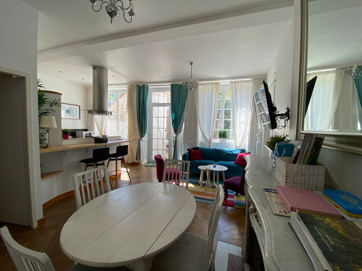 Tranquilo apartamento situado en un edificio antiguo, en pleno centro histórico de Lons le Saunier. Primera planta sin ascensor. Sala de estar con cocina americana totalmente equipada con muebles y electrodomésticos de calidad. Habitación independiente con una cama de 140 cm. El carácter del apartamento también viene dado por su antiguo parquet de roble. Los tranquilos vecinos de arriba tienen lo mismo, lo que trae ligeras molestias sonoras.