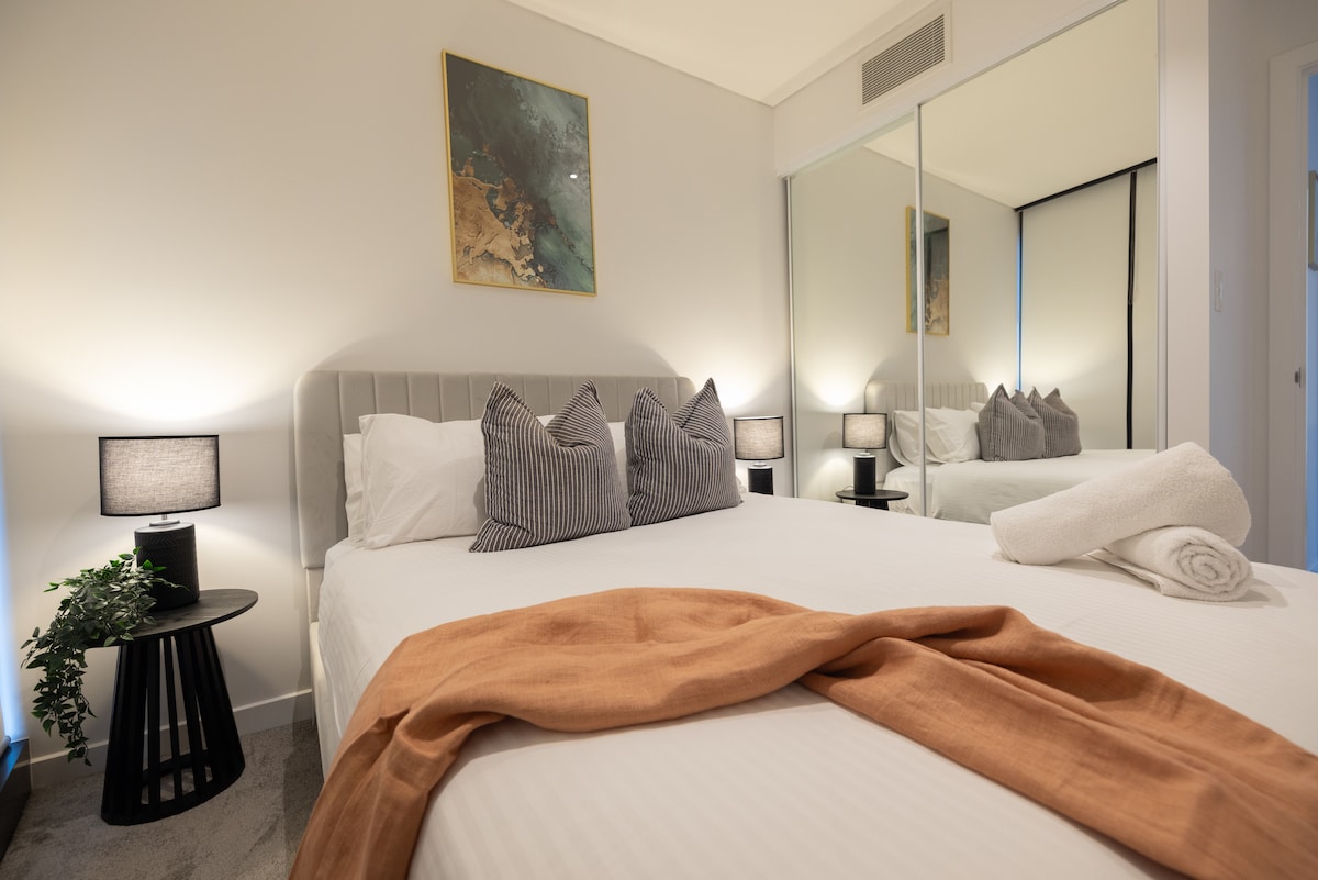 Nuestro impresionante apartamento de un dormitorio con cama tamaño king y vistas al río y al jardín botánico es perfecto para estancias cortas y largas. Situado en el interior del distrito financiero, ¡el edificio SkyTower de Brisbane está cerca de todas partes! Las características del apartamento incluyen: - Amplio dormitorio con cama tamaño king y armario empotrado. Se proporcionan toallas y sábanas limpias. - Sofá cama en la sala de estar. - Aire acondicionado centralizado. - Cocina de gas con cocina completa de chef. - Zona de lavandería escondida. - Lavadora y secadora. - Cafetera. - TV inteligente. - Wifi gratuito.