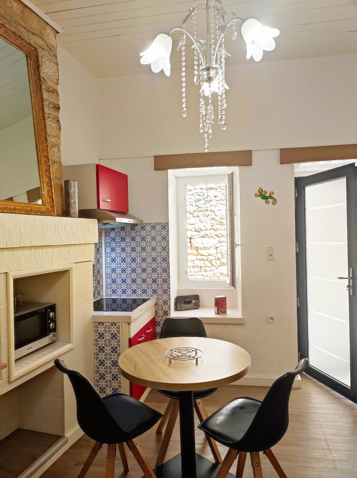 La maison est située dans une étroite rue piétonne qui monte, calme, bordée du haut mur de l'arrière d'un vieil hôtel particulier. Au rdc: une petite pièce à vivre, avec coin cuisine, et une salle de bains. A l'étage: une chambre avec un lit de 160 cm, et un cabinet de toilette. En trois minutes à pied, vous arrivez au centre médiéval.
