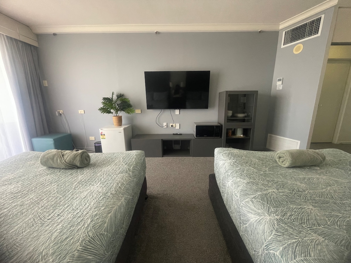 Surfers Paradise Hotel/Apartamento entero, sala de estar privada, a poca distancia a pie de la playa, con bañera de HIDROMASAJE, cocina pequeña