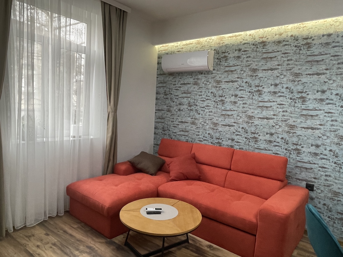Alójate en un apartamento nuevo y moderno en una tranquila calle aristocrática en el corazón del centro de Haskovo, a solo 2 minutos del teatro. Un corto paseo te llevará al emblemático Monumento de Bogoroditsa y al parque más pintoresco de Haskovo con unas vistas impresionantes. Elegante, espacioso y totalmente equipado para estadías cortas o largas, el departamento ofrece calefacción a gas, aire acondicionado, agua caliente constante e Internet súper rápido. ¡Tu refugio perfecto para mayor comodidad y conveniencia te espera!