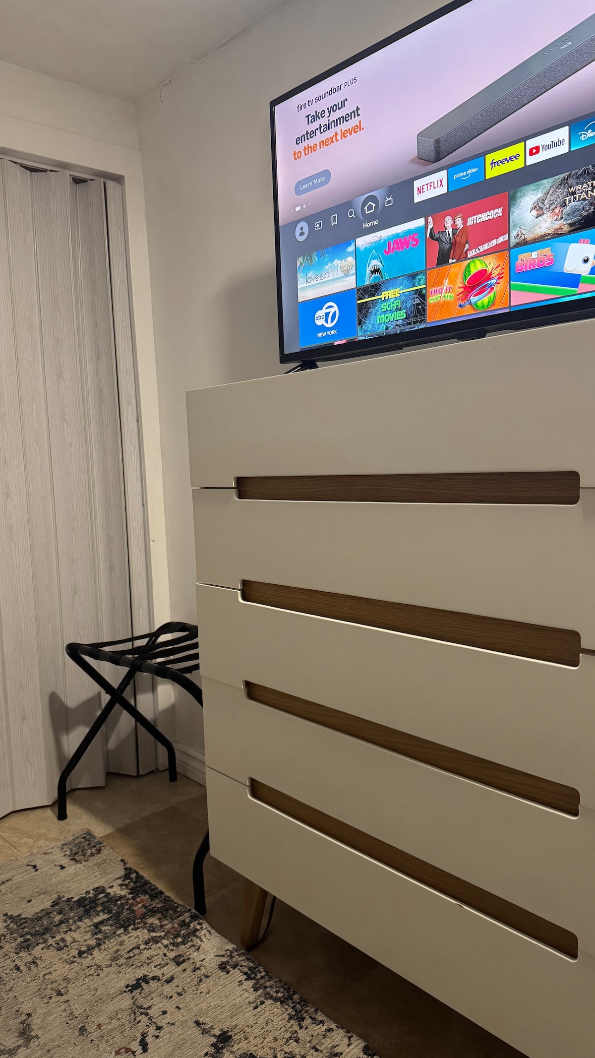 Su comodidad te hará sentir en casa en el momento en que entres. Esta linda suite Tiny Guest de 280 pies cuadrados está totalmente amueblada y bien decorada, viene con cualquier cosa que puedas imaginar. Consta de 1 dormitorio y 1 baño y un área de cocina/comedor/sala de estar. Tamaños de las habitaciones: Dormitorio: 10 pies x 7 1/2 pies Área DR de cocina LR: 19 pies x 10 pies Baño: 40" x 80" Dado lo cerca que está de todo, es perfecto para los huéspedes que planean desplazarse a la ciudad en tren o moverse en Uber.